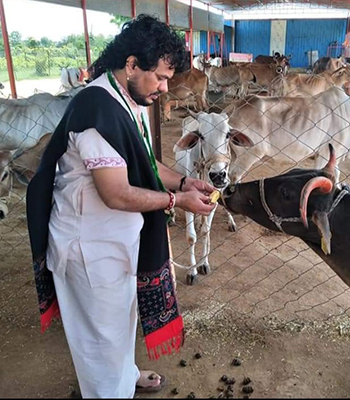 पूज्य गुरुवर नित्य गौ सेवा स्वयं भी करते हैं एवं अपने सभी भक्तों व शिष्यों को भी गौ सेवा के लिए प्रेरित करते हैं ।